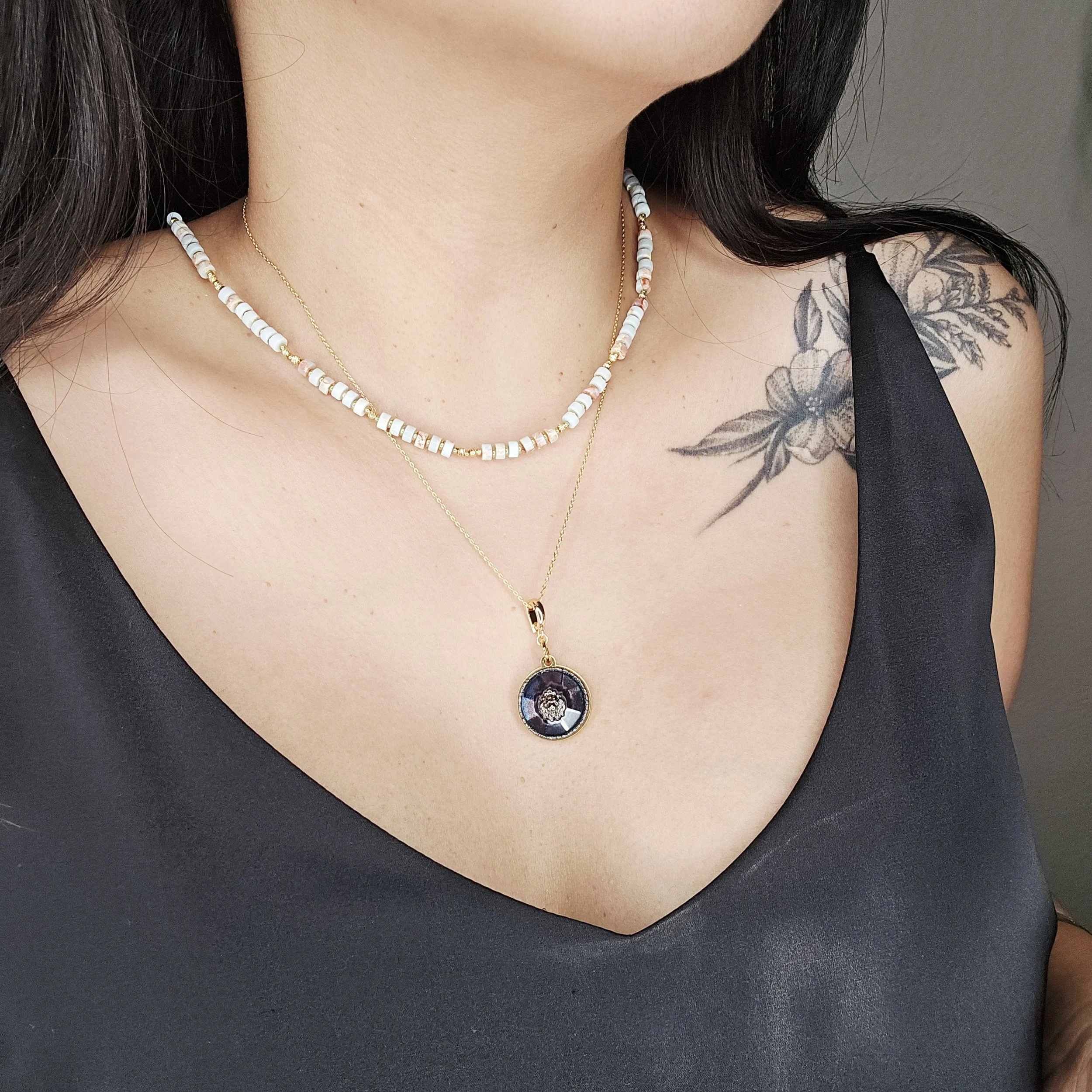 A versatile statement of elegance and strength — this layered set features two chains: a delicate crystal bloom and a bold Chanel lion pendant framed with sparkling rhinestones. Each layer tells its own story — soft meets fierce, grace meets power. Wear them together for a radiant layered look, or separately for subtle sophistication.